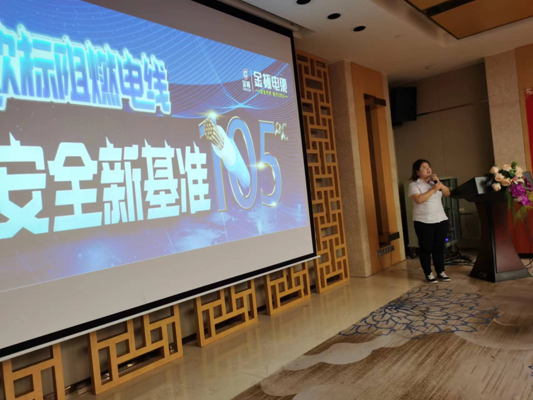 會中,衡陽事業(yè)部市場部熊婷介紹由無盒裝耐溫90度,升級到盒裝耐溫105度的爆款歐標(biāo)阻燃電線。從與第一競品抗老化,多種燃燒實驗,現(xiàn)場儀器測試的對比,來讓分銷商更加深刻體會,認(rèn)識到新款歐標(biāo)阻燃電線的實力,將更自信、更底氣、更多地推廣售賣此產(chǎn)品。
