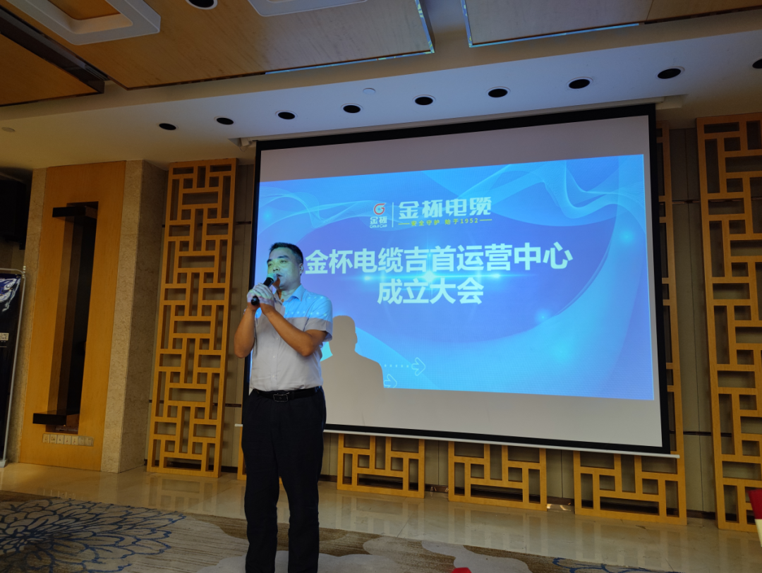 近日,金杯電纜吉首運營中心成立大會在吉首凱萊國際大酒店順利召開。集團(tuán)總裁助理蔣華出席并致辭,集團(tuán)營銷中心副總監(jiān)張興強(qiáng),衡陽事業(yè)部營銷中心總經(jīng)理柳公器出席會議并講話。吉首區(qū)域總經(jīng)理及區(qū)域經(jīng)理,運營中心股東,部分縣城配送商,分銷商等出席會議。會議由衡陽事業(yè)部湘北營銷總監(jiān)邢永勃主持。